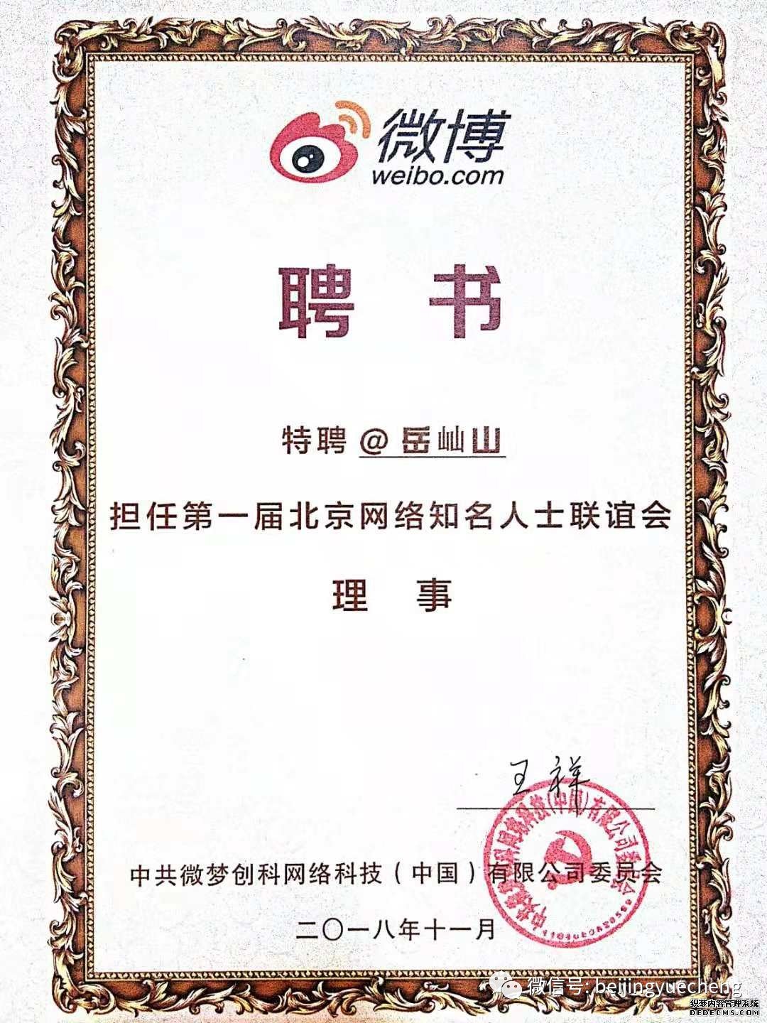 岳屾山律师受聘担任首届北京网络知名人士联谊会理事